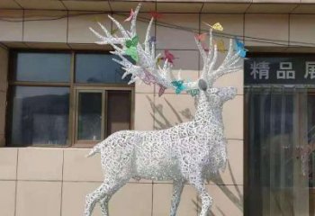 不銹鋼鹿角鏤空梅花亮化雕塑,為景觀廣場擺放