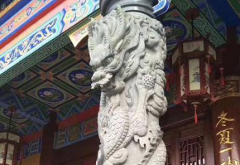 精美仿古園林,花崗巖石龍盤柱點(diǎn)綴