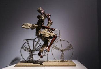 創意不銹鋼騎自行車人物雕塑