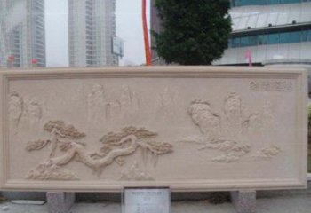 酒店裝飾藝術(shù)迎客松雕塑結(jié)合大理石創(chuàng)意浮雕