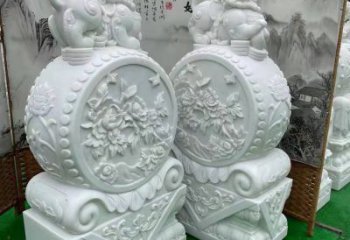 天然優(yōu)質漢白玉浮雕麒麟抱鼓石,裝點你的庭院門口
