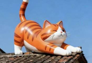 瓦上橘貓?閑臥暖陽——卡通貓玻璃鋼雕塑