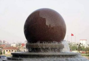 紅色晚霞風水球石雕景觀噴泉,點亮小區美景