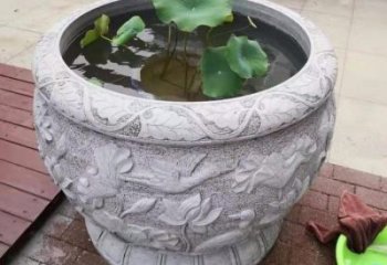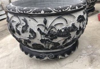 仿古庭院園林石雕浮雕花紋魚缸雕塑