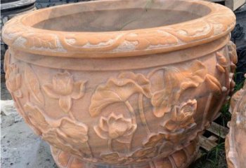 漢白玉浮雕荷花養魚缸,精美庭院裝飾戶外中式花盆