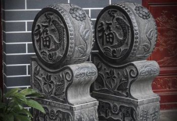 古典巴洛克風(fēng)格石雕黑色大理石門口抱鼓