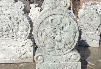 天然石材浮雕太平吉祥抱鼓石,點(diǎn)綴別墅門口