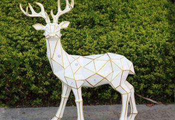 藝術(shù)精美的幾何園林不銹鋼鹿雕塑