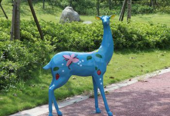公園彩繪玻璃鋼雕塑——藍色鹿