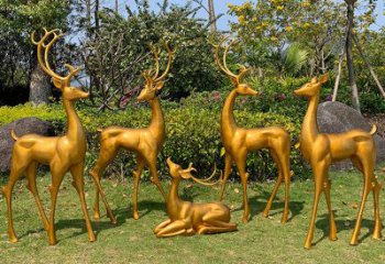 玻璃鋼鹿雕塑,仿銅一家五口伴隨著園林景觀