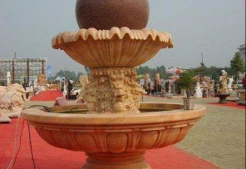 經典中式風水球,黃銹巖浮雕噴泉水
