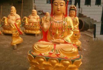 玻璃鋼雕塑觀音菩薩供奉彩繪漆金寺廟裝飾