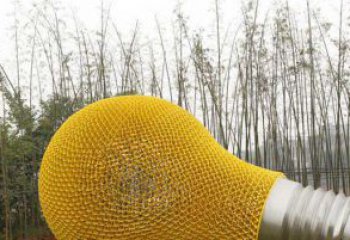 大型不銹鋼鏤空黃色燈泡雕塑