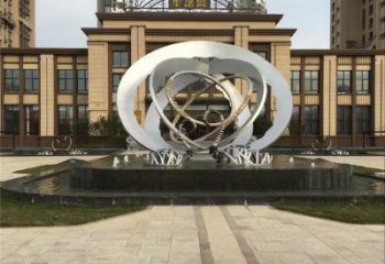 不銹鋼創意圓環噴泉雕塑——給小區售樓部注入新穎水景