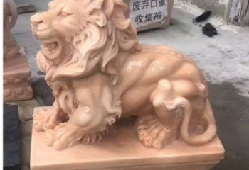 紅晚霞大型石雕獅子景觀雕塑