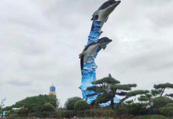 大海豚的精彩表演藝術(shù)化的玻璃鋼雕塑