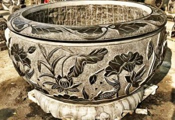 半邊流水紅石雕蓮花花盆雕塑——把親近自然的美景帶回家