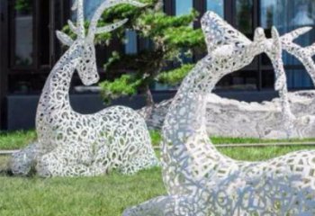 鐵藝梅花鹿雕塑,鏤空低頭更具韻味