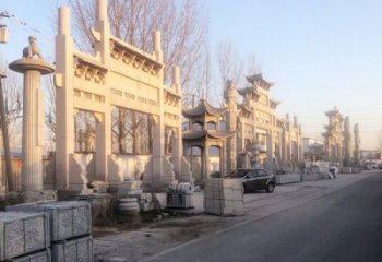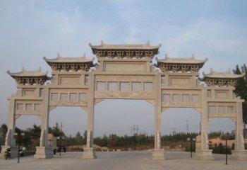 新農村四柱漢白玉石牌樓石牌是一款精致的石牌樓石牌,它采用漢白玉和四柱結構,讓您的新農村建設更加精致、美觀、實用。