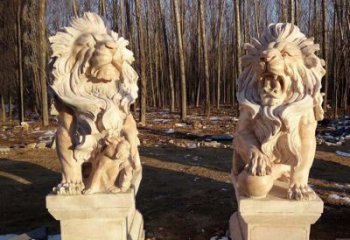 精美大理石石雕石獅子擺件,裝點庭院門口,是由精良的大理石石雕石獅子組成的擺件,它不僅具有精美的外觀,而且充滿了歷史和文化的氣息,為庭院門口增添了一抹濃濃的古典氣息。
