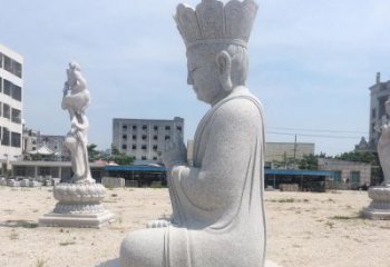 而大型地藏王雕塑則多為光頭或是頭戴毗盧冠,身披袈裟的出家僧人之相。藝術精美地藏王雕塑持錫杖,一手持蓮花,或是手持幡幢、寶珠等。藝術精美大型地藏王雕塑還常有以一頭形似獅子的怪獸為坐騎的,名號曰:或。寶珠地藏,大型地藏王雕塑持寶珠,右手結甘露印,專門救度餓鬼道。