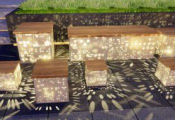 這是一組樹造型的景觀雕塑,采用不銹鋼材質打造。雕塑形似大樹,頂部鏤空且布滿燈光,夜晚亮起時,如璀璨樹冠,為場地增添藝術與浪漫氛圍,可供人們休憩互動。