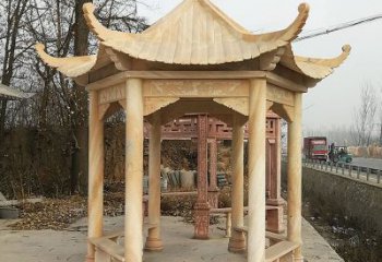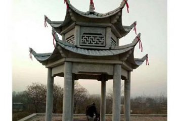 紅雙層石雕涼亭精美的雕塑紀(jì)念碑